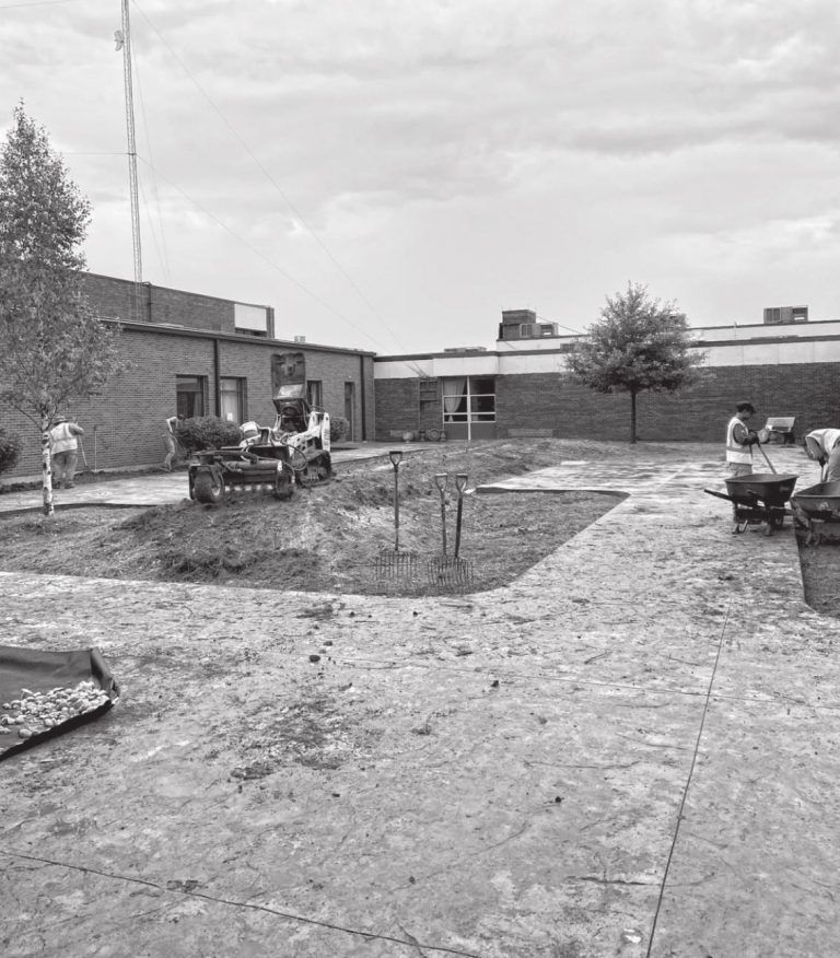 The courtyard at Boonville High School is a small area enclosed on all four sides by the building itself. Access the area has always been difficult, as one must pass through classrooms to reach it, making even simple tasks, such as cutting the grass, complicated.
