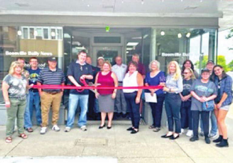 On Wednesday July 6, the Boonville Area Chamber of Commerce held a ribbon cutting for the Boonville Daily News for their new office at 301 Main Street. Chamber President Laura Gramlich presented CherryRoad Media, the parent company of the Boonville Daily News, owner Jeremy Gulban with a ceremonial first dollar.