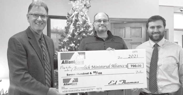 Ed Thomas, Regional President of Alliant Bank in Cooper County, on behalf of Alliant Bank and its Board of Directors, recently presented five local organizations with donations to help them in their ventures to help assist those in need during the holidays. Boonslick Senior Center, Neighbors Helping Neighbors Food Pantry, Harvest House and the local CMCA Care Basket Initiative each received donations of $700.00 from Alliant Bank to assist in helping the needs of those in our community. While each organization serves the needs of the county in different ways, they all serve a great need within our area. During the holidays, there seems to be a greater need, and Alliant Bank is happy to help these local organizations.