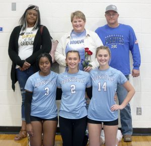 Boonville junior Karagyn Cooper (far right) holds her medal after finishing third in the Class 2 District 2 Golf Tournament Monday at Eldon Golf Club. Cooper finished the tournament with a 15-over par 87 and will now move on to the state tournament on Monday and Tuesday, Oct. 21-22 at Freemont Hill Country Club in Nixa.