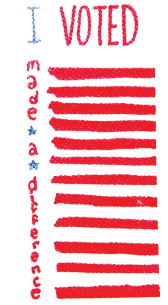 Ss. Peter & Paul student Elizabeth Eichelberger designed the new “I Voted” sticker that was used Tuesday during the Municipal Elections in Cooper County. (Photo by Liz Davis)