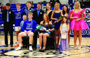 Two members of the Boonville Pirate wrestling team were recognized during Senior Night on Tuesday prior to the varsity boys' match against the Marshall Owls. The Pirate wrestlers defeated Marshall 35-28. (Photo by Chris Bowie)
