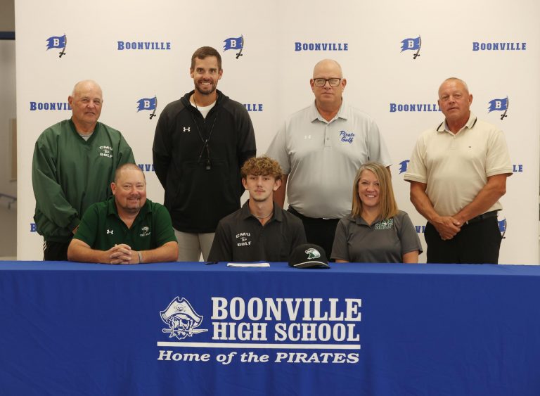 Senior members of the Boonville Pirates football team, cheerleading squad and Dance Team were recognized prior to the game between the Boonville Pirates and Osage Indians Friday night at Gene Reagan Field in Boonville. The Pirates defeated Osage 27-20 to improve to 5-2 overall and 4-1 in the TCC. (Photo by Chris Bowie)