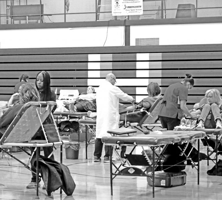 The Boonville High School National Honor Society held a blood drive on Friday, March 24 in Windsor Gymnasium. Melissa Hundley, mathematics teacher at BHS, said that by 9 a.m. they had seen a lot of community support for the drive as well as many students who participated in the event as well, some for the first time. (Photo by Laura Wax)